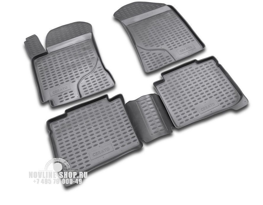 Поэтому выбирая коврики для KIA Cerato обратите внимание на таки характеристики, как износостойкость, прочность, гибкость и так далее. Не мало важно преимущество модельных ковриков, они идеально подойдут для салона KIA Cerato, в отличии от универсальных, которые еще нужно подрезать согласно особенностям салона.