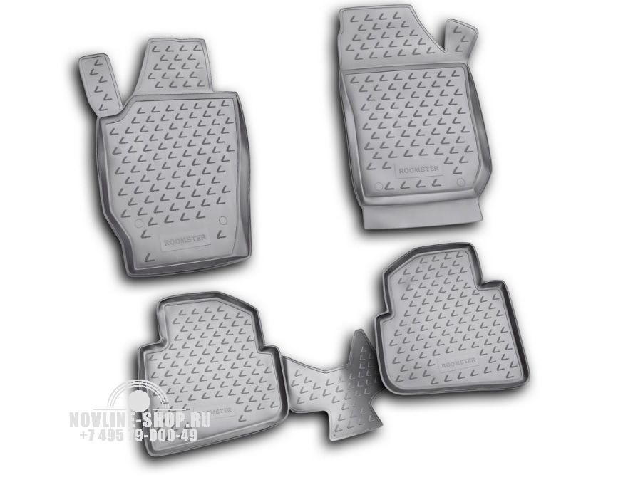 Комплект полиуретановых ковров в салон предназначен для защиты пола автомобиля SKODA Roomster от загрязнения и механических повреждений