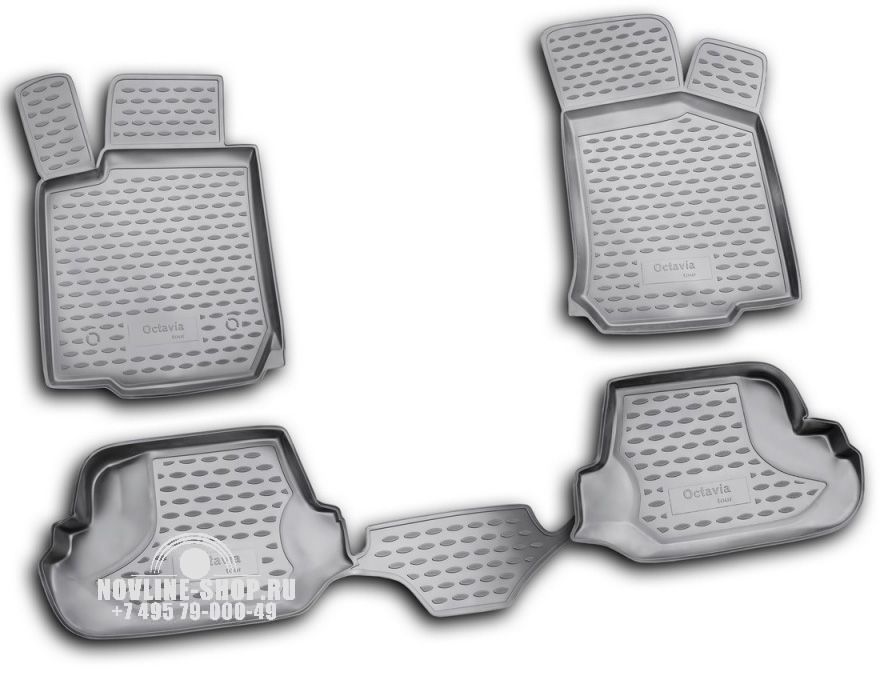 Комплект полиуретановых ковров в салон предназначен для защиты пола автомобиля SKODA Octavia от загрязнения и механических повреждений