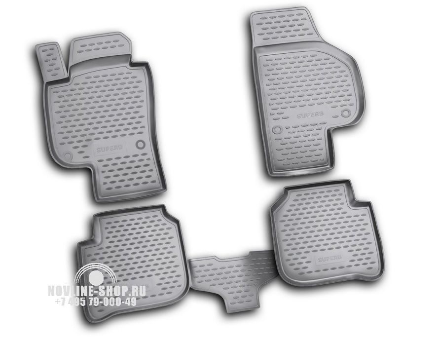 Комплект полиуретановых ковров в салон предназначен для защиты пола автомобиля SKODA Superb от загрязнения и механических повреждений