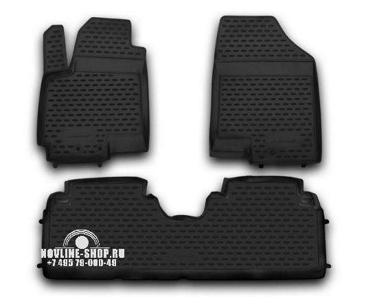 Комплект полиуретановых ковров в салон предназначен для защиты пола автомобиля KIA Venga от загрязнения и механических повреждений