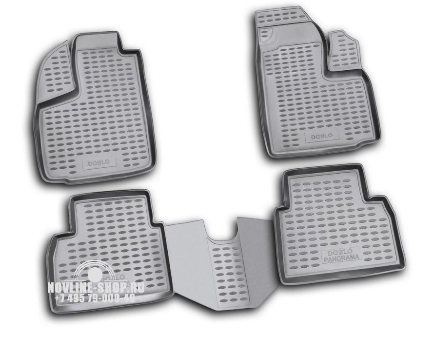 Комплект полиуретановых ковров в салон предназначен для защиты пола автомобиля FIAT Doblo от загрязнения и механических повреждений