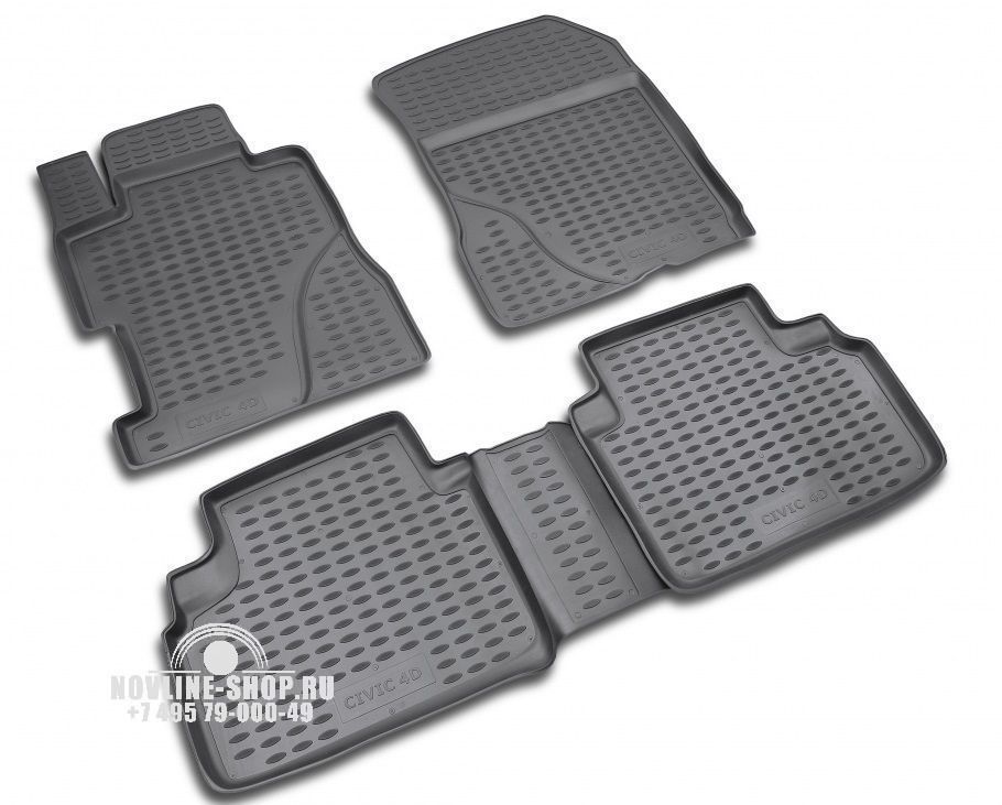 Комплект полиуретановых ковров в салон предназначен для защиты пола автомобиля HONDA Civic от загрязнения и механических повреждений