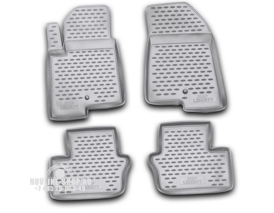 Комплект полиуретановых ковров в салон предназначен для защиты пола автомобиля JEEP Liberty от загрязнения и механических повреждений