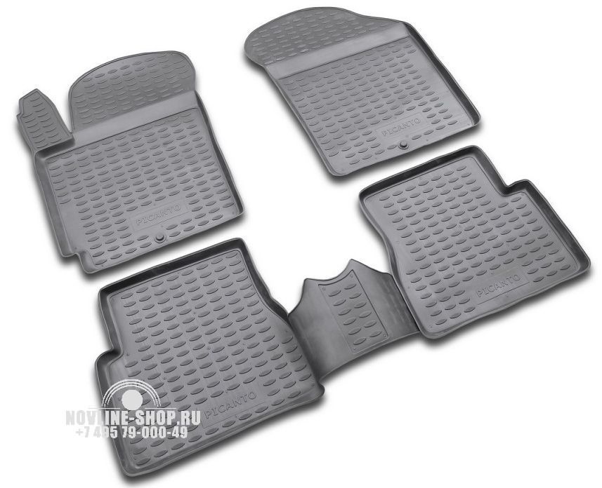 Комплект полиуретановых ковров в салон предназначен для защиты пола автомобиля KIA Picanto от загрязнения и механических повреждений