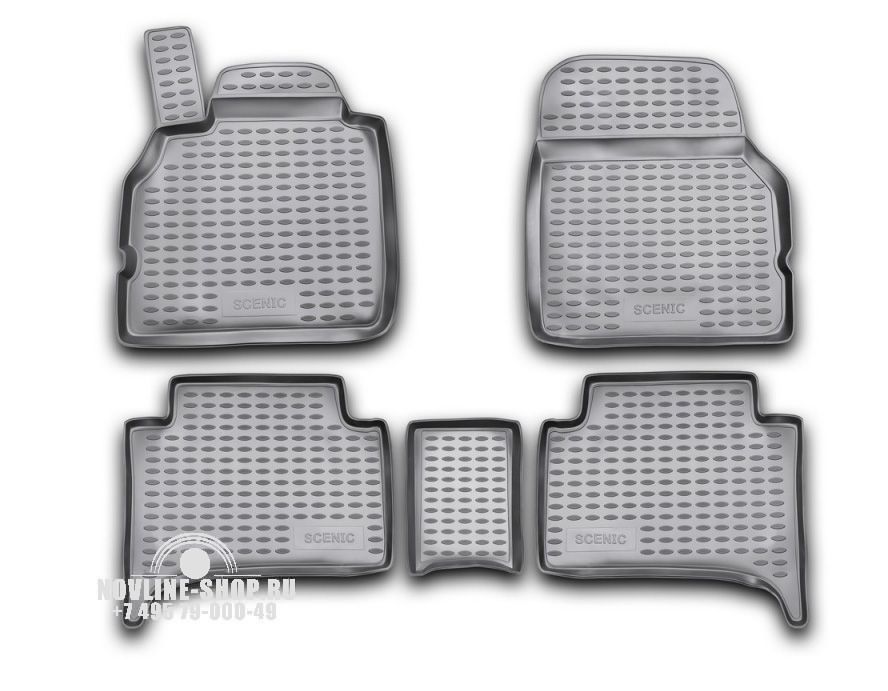Комплект полиуретановых ковров в салон предназначен для защиты пола автомобиля RENAULT Scenic от загрязнения и механических повреждений