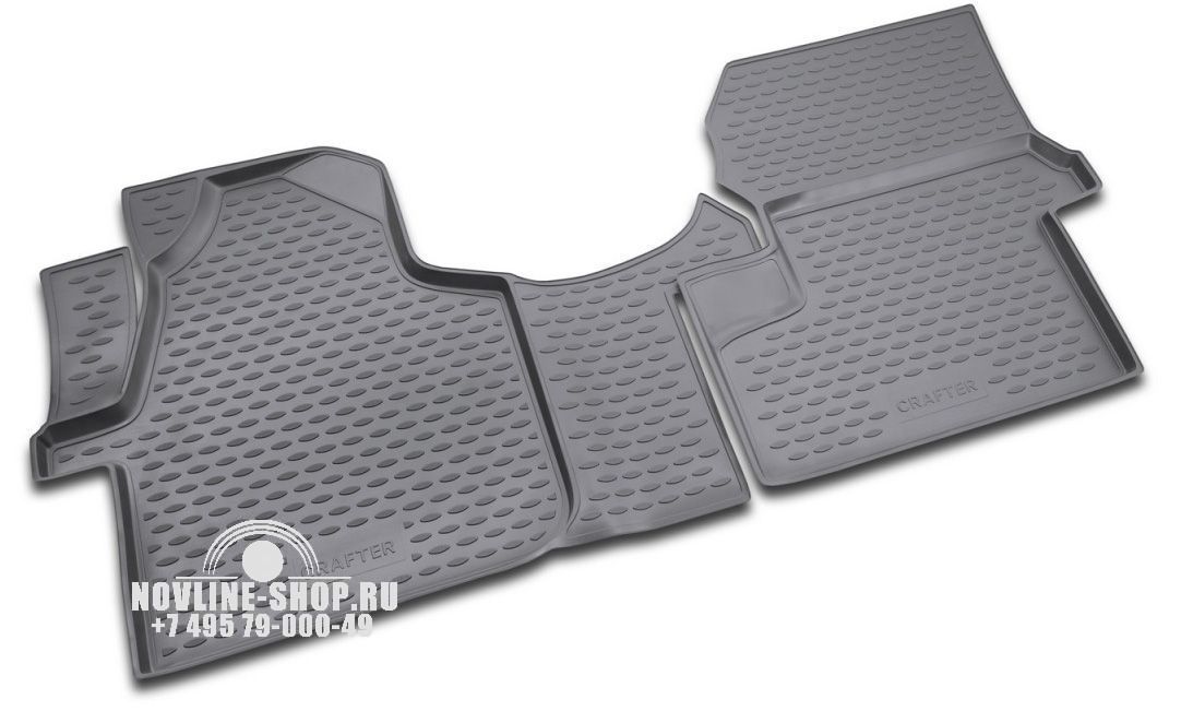 Комплект полиуретановых ковров в салон предназначен для защиты пола автомобиля VOLKSWAGEN Crafter от загрязнения и механических повреждений