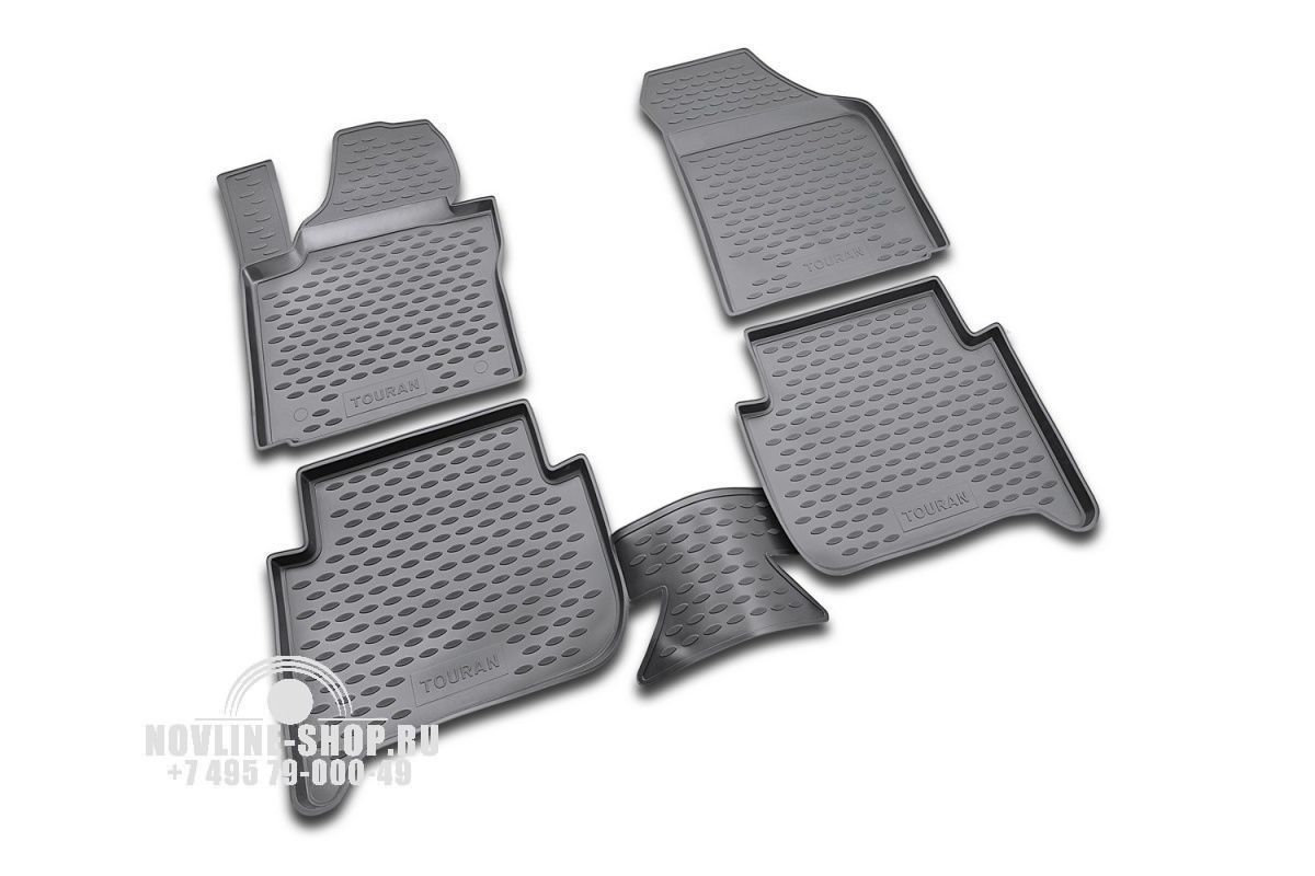 Комплект полиуретановых ковров в салон предназначен для защиты пола автомобиля VOLKSWAGEN Touran от загрязнения и механических повреждений
